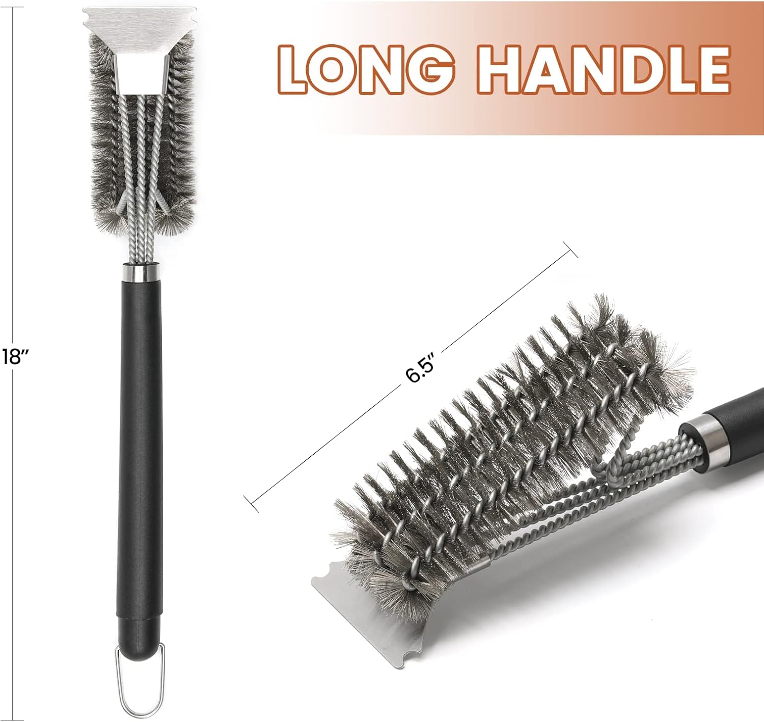 • The bristles are tightly twisted into the heavy wire frame, which reduces the possibility of wire shedding. The 18Inch long handle gives you the most leverage and keeps your hands away from high heat.